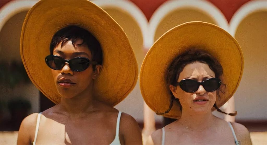 One of the most effective things about Blink Twice is how it weaponizes luxury. The island is stunning like the turquoise water, private chefs, perfect lighting, clothes that look straight out of a resort campaign. Everything is curated to make us (and Frida) relax. It’s like you forget that you’re watching a thriller.That’s the trick.The beauty is the distraction.